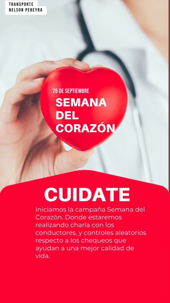 En transporte Nelson Pereyra, acompañamos la campaña de semana del corazón, realizando jornadas de concientización a nuestro equipo, y aportando ideas de comidas saludables como realizando controles de presión, peso, etc.. con colaboración de personal de enfermería de Planta La Tablada, de Ancap.